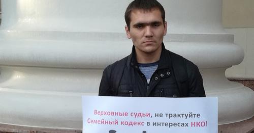 Пикетчик рассказал, что текст проекта постановления Пленума ВС России был опубликован 17 октября в «Адвокатской газете». "Содержание проекта повергло родительскую общественность в шок — документ по факту расширяет и закрепляет ряд особо одиозных антисемейных установок, против которых не раз выступали представители "Родительского всероссийского сопротивления" и других организаций. Этот проект документа в Верховном суде отвергли, отправив на доработку. Какой будет новая редакция, которую и будут рассматривать на Пленуме 14 ноября судьи, общественность не знает", - объяснил пикетчик, добавив, что "проект несет угрозу семейному законодательству".