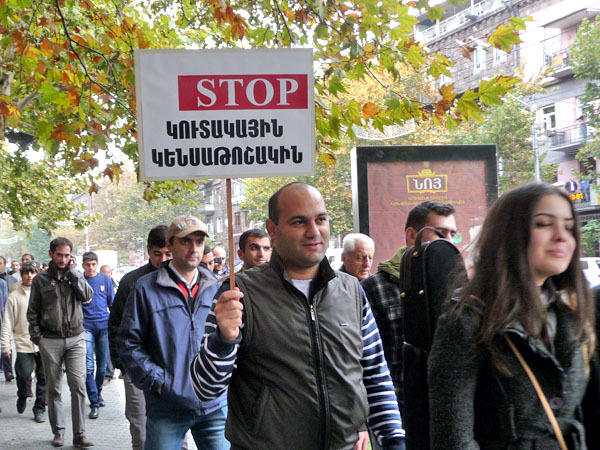 Участники акции протеста потребовали от властей Армении доработать реформу пенсионной системы, которую планируется ввести с января 2014 года. Ереван, 15 ноября 2013 г. Фоторепортаж корреспондента «Кавказского узла» Армине Мартиросян