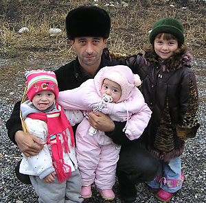 На фото: Мурад и его дети (три девочки). Около 5 утра сотрудниками силовых структур задержан Мурад Богатырев, проживающий в сборно-щитовом домике в с. Верхние Ачалуки, ул. Бекова. Силовики ворвались в вагончик Богатырева и увезли его в Малгобекский РОВД. В вагончике и на прилегающей территории был проведен обыск, в присутствии понятых и отца Богатырева. Ничего противозаконного обнаружено не было. В протоколе обыска сказано, что изъяты только мобильный телефон и сим карта. В 8 утра родственники, находившиеся у здания РОВД, увидели, как сотрудники выносят раздетый труп Богатырева. Жене убитого было заявлено, что Мурад скончался от сердечного приступа. Тело родственникам не отдали, сказав, что доставят его в Бюро СМЭ МЗ по РИ. Несколько часов спустя жена Богатырева поехала домой за завещанием мужа, которое нужно для похорон. Прибыв на место, она увидела, что военные снова проводят обыск. Один из них засуетился и спросил, зачем она приехала. Жена Богатырева предложила военным ключ от вагончика, однако, ключ они не взяли, и в вагон они зайти отказались, сказав, что хотят провести обыск во дворе. После всего произошетшего МВД РИ распространила информацию о том, что при повторном обыске были "обнаружены" патроны ПК калибра 7, 62 мм - 1092 шт, к АК калибра 7б62 – 37 шт., к АК - калибра 5,45 мм.-85 шт., к ПМ-9 мм-38 шт, граната РПГ-5- 1 шт, магазин АК с 30 патронами калибра 5,45. Возбуждено уголовное дело по ст. 317, ч.2 ст.222 УК РФ. Протокола обыска родственникам не выдали, понятых они не видели. А 9 сентября по 5 каналу в новостном блоке "Сейчас" прошла информация о том, что Богатырев (якобы активный участник НВФ через которого проходят финансовые потоки для поддержания боевиков) был задержан по подозрению в нападении на воинскую часть в Малгобеке, и что после задержания он скончался от сердечной недостаточности. Жена, родственники и многочисленные соседи убитого утверждают, что они могут подтвердить, что в момент нападения на воинскую часть в Малгобеке, Мурад находился не в Малгобеке, а в Назрани у родителей. Труп Богатырева родственники забрали из морга. На теле - многочисленные следы избиений, что засвидетельствовано видео и фото съемкой. |