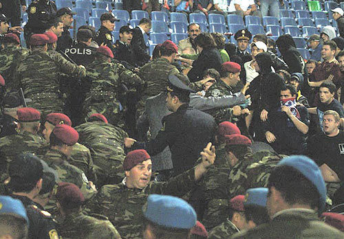 Как уже сообщал "Кавказский узел", столкновения между болельщиками этих футбольных команд начались еще на стадионе во время матча. Российские фанаты начали забрасывать сектор местных болельщиков петардами, а также предпринимали попытки прорваться на их сектор через ОМОН. В ответ сотрудники ОМОНа применили против болельщиков обеих команд силу.
