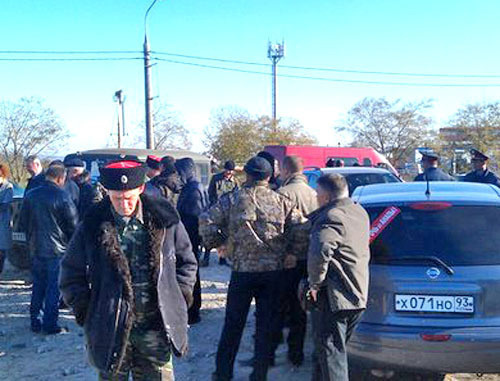 Сход местных жителей начался около 11.00 на месте, где вдоль моста через Анапку в начале Пионерского проспекта незаконно, по их утверждению, нарезаны участки земли. Собравшиеся казаки срезали забор, возведенный на этом участке.
