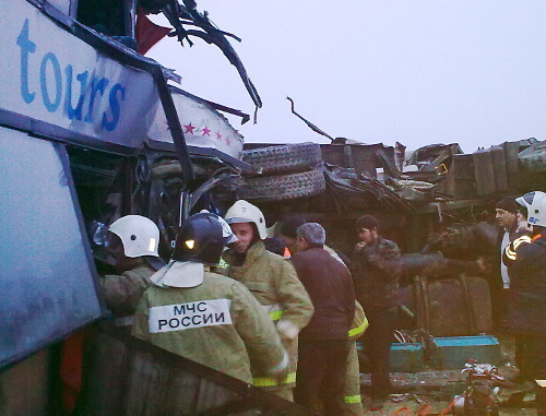 По словам сотрудника больницы, в ДТП пострадали 15 человек, 14 из них госпитализированы, сообщает РИА "Новости".