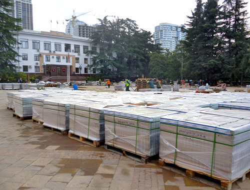 Рабочий фирмы "С-Дон" пояснил корреспонденту "Кавказского узла", что они получили указание от своего руководства аккуратно снимать и упаковывать плитку. "Затем ее везем на Мамайку на склад. Что там с ней делают потом - не знаем", - рассказал рабочий.