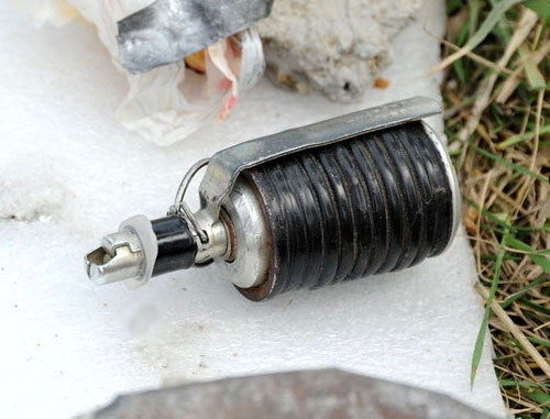 Самодельное взрывное устройство на основе тротиловой шашки с запалом, боевая граната Ф-1 с взрывателем и 40 патронов калибра 7,62 мм были обнаружены при санкционированном обследовании домовладения сотрудниками центра по противодействию экстремизму МВД по КБР в ходе реализации оперативно-разыскных мероприятий.