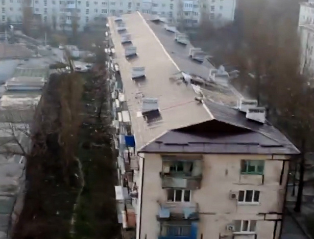 Ураган снес крышу одного из многоэтажных домов в Новороссийске, соответствующее видео 10 марта опубликовал житель города на YouTube.