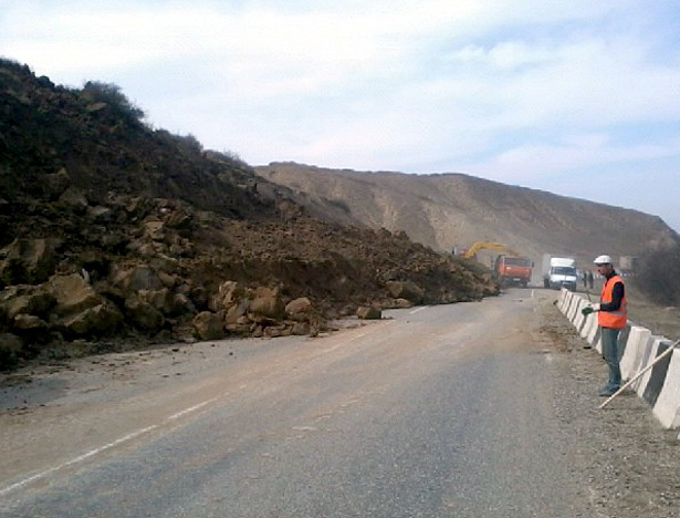 В Дагестане из-за схода оползня перекрыто движение на трассе Буйнакск - Гимры