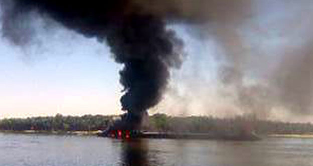 В Астраханской области загорелся буксировщик