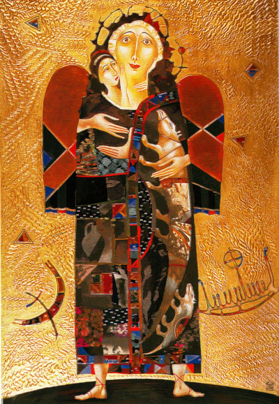 "Постоянные темы его творчества - любовь, борьба добра и зла, природа, космос, мировое пространство. Особое место в творчестве художника занимают две темы: "Мать и дитя" и "Богородица". В этих образах, выполненных в светлой эмоциональной тональности, он стремится передать гармонию, внутреннюю чистоту, благородство", - отметила она.