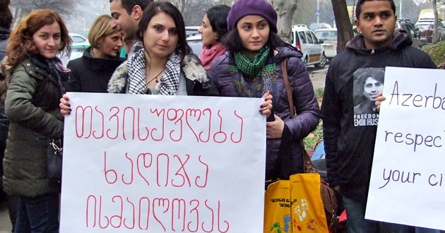 По словам одной из участниц акции, редактора интернет-издания Netgazeti Маи Мецхваришвили, журналисты собрались сегодня, "чтобы опротестовать незаконный арест коллеги в Азербайджане".