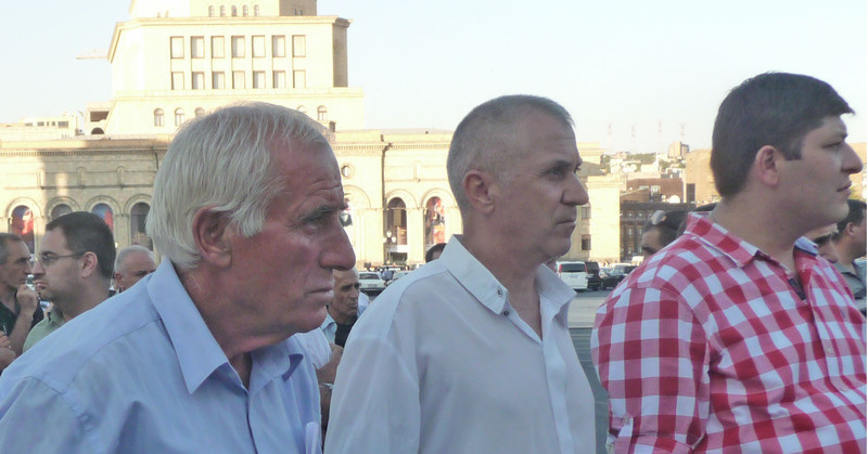 На митинге присутствуют члены "Учредительного парламента", а также лидер партии "Национальное самоопределение" Паруйр Айрикян.