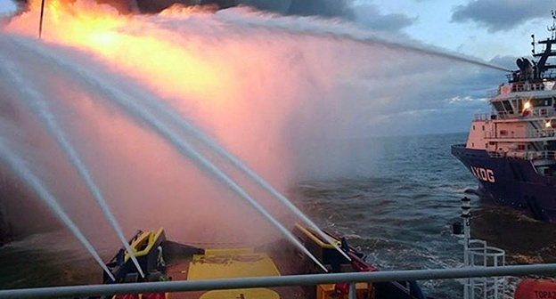 Он также отметил, что пожар на "Гюнешли" ликвидируют с пяти кораблей.