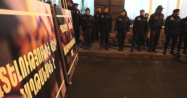Непосредственно на площади дежурят около 40 полицейских, еще около 70 полицейских находятся возле площади Свободы. В свою очередь представители "Новой Армении" заявили, что не собираются прекращать акцию протеста.