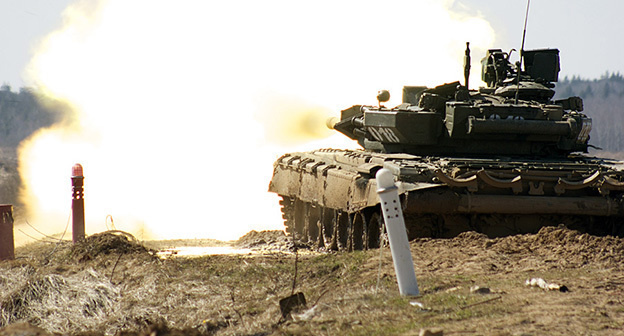 Первые упражнения танкисты выполняют с использованием вкладного ствола, который монтируется в пушку танка. Меньший калибр боеприпасов позволяет снизить износ танковой пушки, сообщается на сайте министерства обороны РФ.