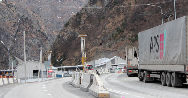 Количество грузовиков на КПП "Верхний Ларс" уменьшилось в два раза