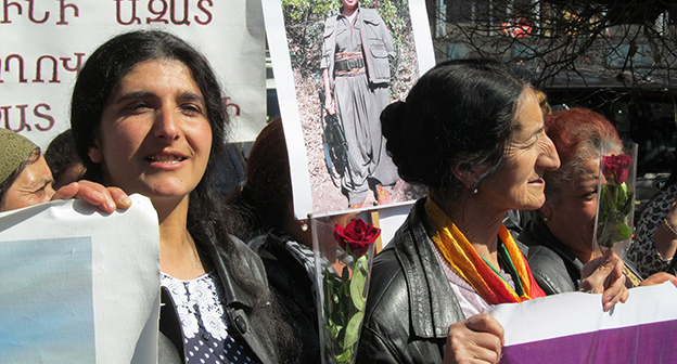 Около 50 курдских женщин с детьми на площади Шаумяна в Ереване организовали протестную акцию с требованием "прекратить геноцид курдского народа в Турции".