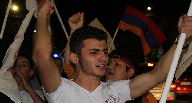 Как сообщал "Кавказский узел", 19 июля произошло столкновение полиции и активистов при попытке манифестантов проникнуть на территорию захваченного здания полка полиции в Ереване. По словам очевидцев, со стороны района Сари Таг группа людей пыталась прорваться к захваченному зданию, а когда полиция перекрыла им дорогу, они стали бросать камни в полицейских. Впоследствии четверо жителей района Сари Таг Арутюн Торосян, Грайр Исаханян, Эдуард Зейтунян и Андраник Кесеян были обвинены по части 2 статьи 316 Уголовного кодекса Армении "Применение насилия против представителя власти".