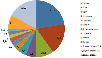 Соотношение по странам числа туристов, посетивших Армению