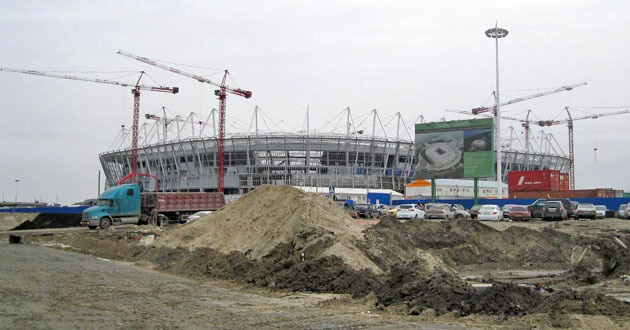 Как писал "Кавказский узел", Ростов-на-Дону вошел в число 13 российских городов, в которых пройдут финальные матчи чемпионата мира по футболу 2018 года. В городе создается спортивный кластер, главным объектом которого является стадион "Ростов-Арена". 19 мая 2016 года около 150 строителей стадиона объявили забастовку, требуя от компании "Крокус-групп" погасить долги по зарплате.