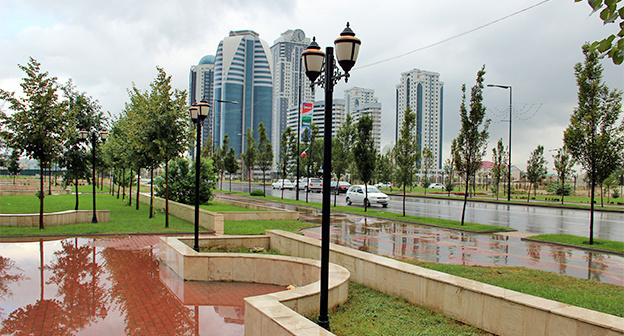 Минувшей ночью также был дождь, сопровождавшийся грозами и порывами ветра. Непогода привела к частичному отключению электроснабжения в Грозном.