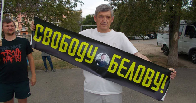 Согласованный с властями митинг проводился 25 июля в парке "Дружба", расположенном в одном из спальных районов Астрахани. Его участники держали в руках флаги России и плакаты "Свободу Белову!", "Остановить политический произвол полиции!", "Свободу политзаключенным. Свободу России!".