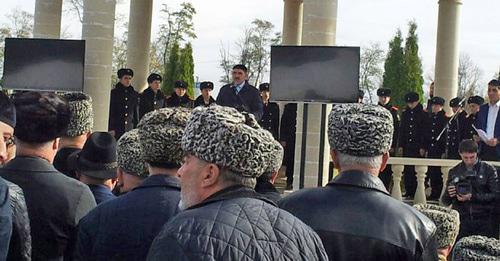Дополнение "Кавказского узла" от 20:05 31.10.17. По оценке мэра Назрани Алихана Тумгоева, мемориальное кладбище "Гlоазот кашмаш" в Назрани 30 октября посетили свыше шести тысяч человек. На митинге все призывали к миру, агрессивной риторики не было, подчеркнул глава города. "Трагедия Пригородного района затронула каждую ингушскую семью. Приехали не только жители Ингушетии, а ингуши из разных регионов и даже стран. Мы никогда не забудем наших пропавших без вести людей", - сказал мэр Назрани, чьи слова передал корреспондент "Кавказского узла".