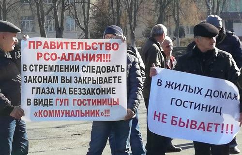 В резолюции митинга протестующие указали, что распоряжение правительства Северной Осетии №268-р от 24.10.2003 года «О комплексе общежитий гостиничного типа по пр. Коста, 275, 279» предоставило ГУП "Гостиница «Коммунальник» право организовать гостиничный бизнес в здании общежития на проспекте Коста, 279 во Владикавказе. При этом соседнее общежитие по адресу проспект Коста, 275, входившее в один комплекс с домом №279, было включено в жилищный фонд.