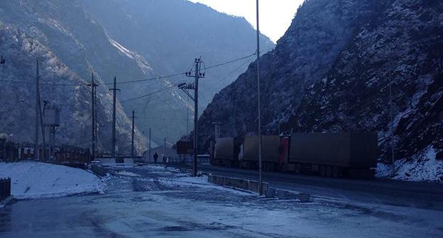 Выезд большегрузных машин из России через пункт пропуска "Верхний Ларс" приостановлен в связи с непогодой на территории Грузии.