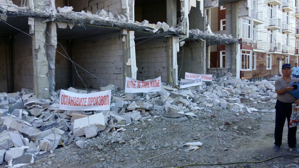 Часть покупателей квартир в новостройке в сочинском поселке Мирный, которая сносится по решению суда, потребовали от застройщика вернуть им деньги. Другие дольщики попросили федеральные власти вмешаться в ситуацию и позволить восстановить дом. Застройщик признал, что возводил дом без разрешения, но заявил, что для Сочи это обычная практика.