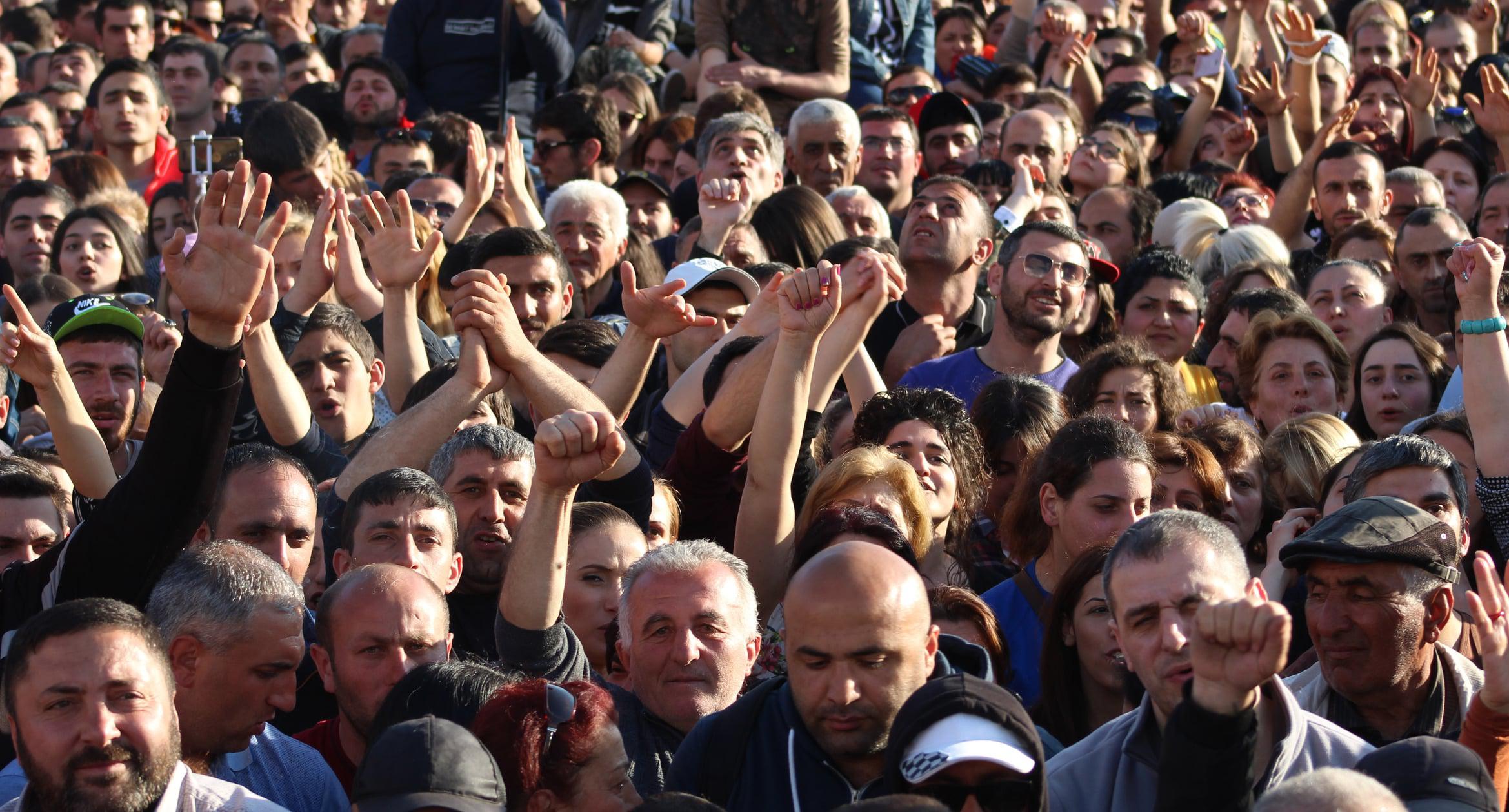 Как писал "Кавказский узел", сотни тысяч человек собрались сегодня на площади Республики в Ереване, где проходит митинг оппозиции, участники которого празднуют отставку премьера Сержа Саргсяна.
