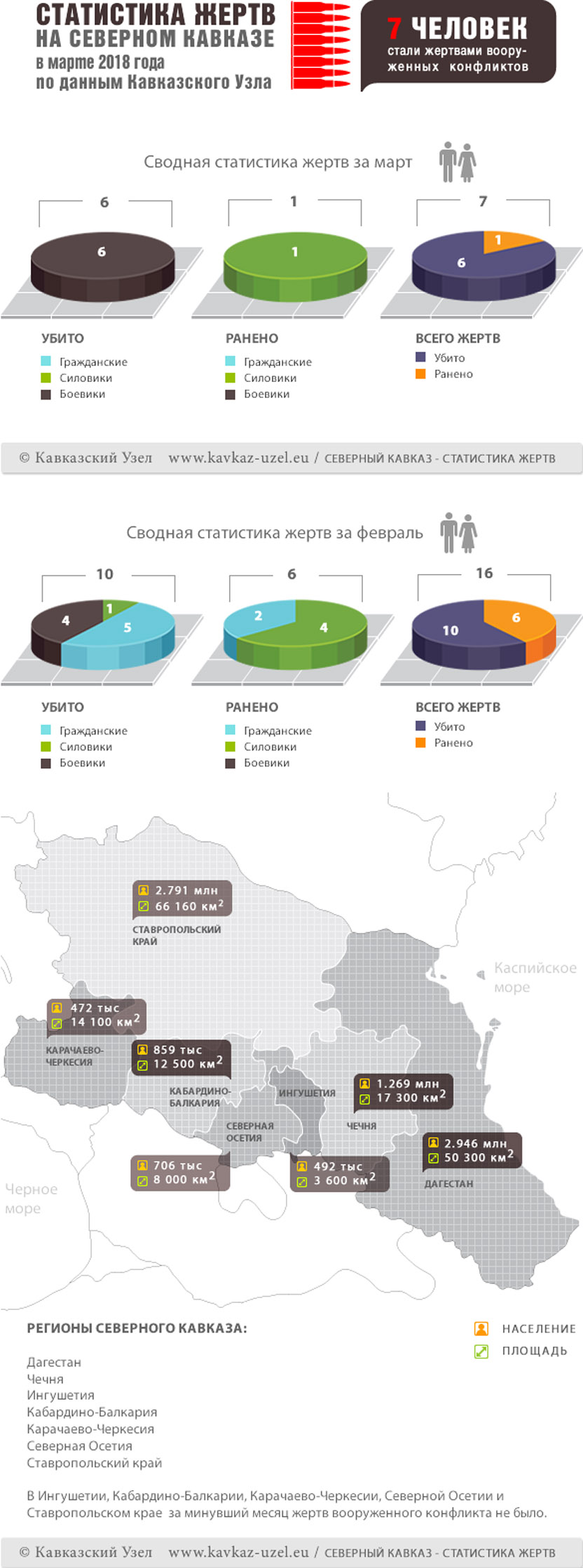 Инфографика. Статистика жертв на Северном Кавказе в марте 2018 года по данным Кавказского Узла