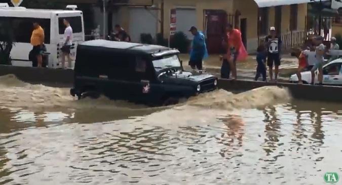 Как писал "Кавказский узел", 6 июля, накануне четвертьфинала мундиаля, улицы Сочи оказались затоплены после сильного ливня.