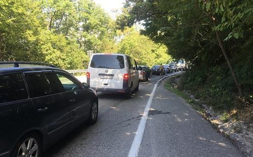 Туристы из Красноярска Анна и Владимир Туровы сообщили, что простояли в пробке три часа, в машине трое маленьких детей. "Ужасная жара, в машине сидеть невозможно. Кондиционер отключили, потому что много бензина уходит. Мы намучились, понятно, что больше сюда отдыхать мы не приедем", - сказал корреспонденту "Кавказского узла Владимир Туров примерно в десять утра.
