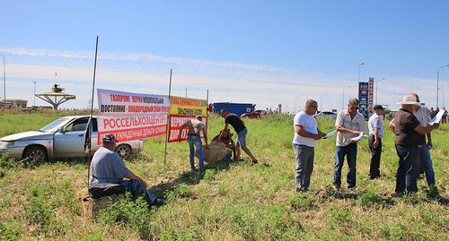 "Рядом с местом митинга находится частная заправка. Чтобы там могли разворачиваться большегрузы, под видом реконструкции дороги, передвинули эту дорогу на шесть метров. Потом для строительства другой частной заправки по полю Птицына поставили линию электропередачи по всей длине участка. По полю другого фермера Владимира Мажаева проложили газопровод, рекультивацию не провели, тем самым уничтожено шесть гектаров плодородной земли", - рассказал Чеверда корреспонденту "Кавказского узла".
