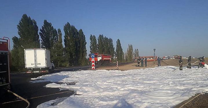 Разлив дизельного топлива произошел в результате ДТП на северо-западе Ставрополя, пострадал водитель бензовоза.