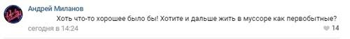 "Хоть что-то хорошее было бы! Хотите и дальше жить в мусоре, как первобытные?" - высказался участник сообщества Андрей Миланов.