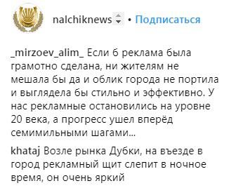 Демонтаж рекламных конструкций активно обсудили и на странице группы nalchiknews в Instagram (69 070 подписчиков). Новость, опубликованная там 23 ноября, по состоянию на 16.50 мск сегодня, собрала 240 лайков и 32 комментария.