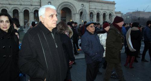 Акция в поддержку Кочаряна проходит сегодня в центре Еревана, ее организовала инициативная группа "Свобода президенту", передает "Спутник-Армения".