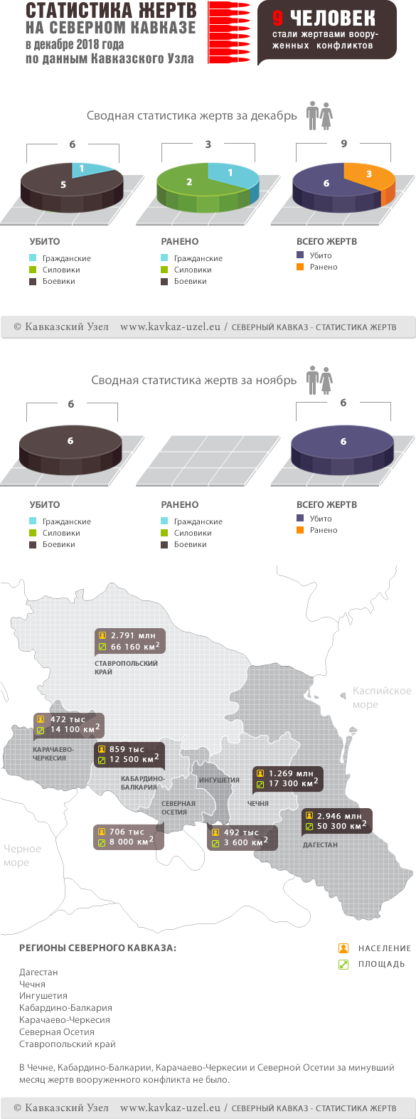Инфографика. Статистика жертв на Северном Кавказе в декабре 2018 года по данным Кавказского Узла