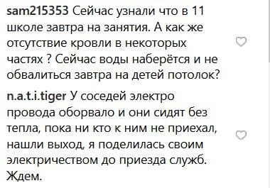 "Сейчас узнали, что 11 школе завтра на занятия. А как же отсутствие кровли в некоторых частях? Сейчас воды наберётся, и не обвалится завтра на детей потолок?" - написал пользователь с ником sam215353.