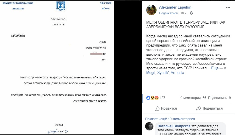 18 февраля на своей странице в социальной сети Facebook блогер Александр Лапшин опубликовал сообщение, в котором рассказал, что против него возбудили два новых уголовных дела в Азербайджане.