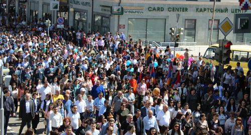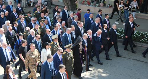 Утром 9 мая в Степанакерте состоялось традиционное шествие, которое возглавили президент Нагорного Карабаха Бако Саакян и премьер-министр Армении Никол Пашинян, сообщил корреспонденту "Кавказского узла" сотрудник пресс-службы президента Нагорного Карабаха.