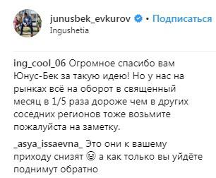 Попытку Евкурова повлиять на цены пользователи Instagram сочли сомнительной. Некоторые из них усомнились в том, что глава республики осведомлен о реальных ценах.