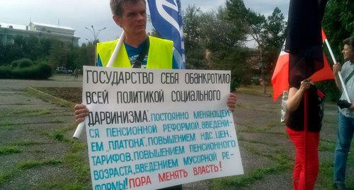 Участники акции стояли на площади Металлургов сегодня вечером в течение часа. Они держали плакаты, на которых было написано: "С 1 июля опять поднимут тарифы - ЖКХ, свет… Ждите", "Государство себя обанкротило всей политикой социального дарвинизма: постоянно меняющейся пенсионной реформой, введением "Платона", повышением НДС, цен, тарифов, повышением пенсионного возраста, введением мусорной реформы! Пора менять власть", "Сталинградцы! Ваше равнодушие порождает произвол власти!" и другими. За акцией наблюдали несколько полицейских, передала корреспондент "Кавказского узла".