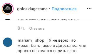 «Я не верю, что может быть такое в Дагестане... мне просто не хочется верить в это», - написала mariam__shop__ в паблике golos.dagestana в Instagram. К 21.00 мск 24 июля под новостью оставлено 372 комментария.