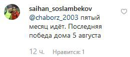 "Последняя победа дома (была) 5 августа", – написал другой пользователь, saihan_soslambekov.