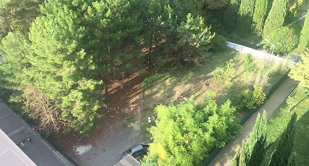 Корреспондент "Кавказского узла" связался с авторами сообщения, которые 31 декабря показали место застройки. Там действительно ведутся строительные работы: рабочие спиливают деревья, работают бетономешалки, КамАЗы заезжают и выезжают с парковой зоны, на которой растут сосны. Сама территория рядом с пансионатом "Коралл" огорожена строительным забором. На месте вырубленных сосен идет заливка бетоном второго этажа строящегося здания.