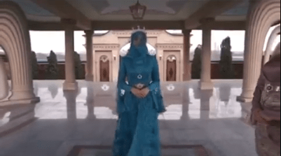 Видео, на котором девушка с закрытым прозрачным платком лицом и короной на голове, прогуливается по богато убранным апартаментам, был опубликован в соцсетях.