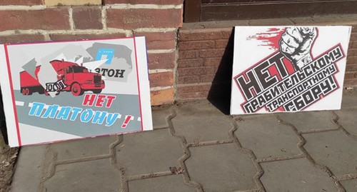 "Кавказский узел" также писал, что 11 июля четверо членов Волгоградского областного отделения "Объединения перевозчиков России" провели одиночные пикеты с требованием отменить систему "Платон" и транспортный налог.