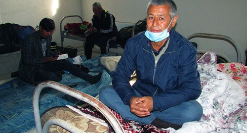 В соседнем помещении на матрасах лежала укутанная в одеяло женщина, представившаяся Динорой. Ее муж сидел рядом и общался с друзьями по телефону. Женщина рассказала, что она работала в Быковском районе Волгоградской области на бахче. "Мы решили поехать домой не из-за вируса. Нам надо к родителям. Они болеют. Но в нашей группе остались люди. Они не могут уехать – нет денег. Пять человек хотят уехать, но пока не могут. Деньги получили и отправили в Узбекистан. А тут уезжать надо", – рассказала женщина.