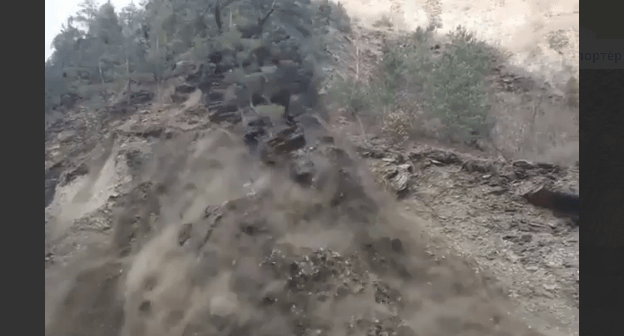 Видео обвала части горы появилось в Сети. На кадрах видно, как с вершины на дорогу обрушивается земля вместе с деревьями и камнями, проезжую часть накрывает клубами пыли. Видео, опубликованное сегодня в 15.30 мск в Telegram-канале "Мобильный репортёр official", к 19.40 мск набрало 2,5 тысячи просмотров.